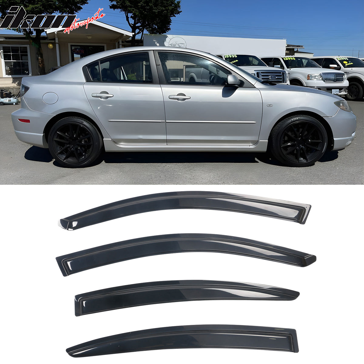 2004-2009 Mazda 3 Sedan 4Pcs Side Window Visors Deflectors Acrylic