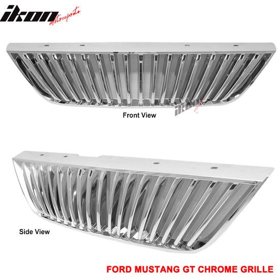 1999-2004 Ford Mustang 2Dr Vertical Chrome Front Upper Hood Grille ABS