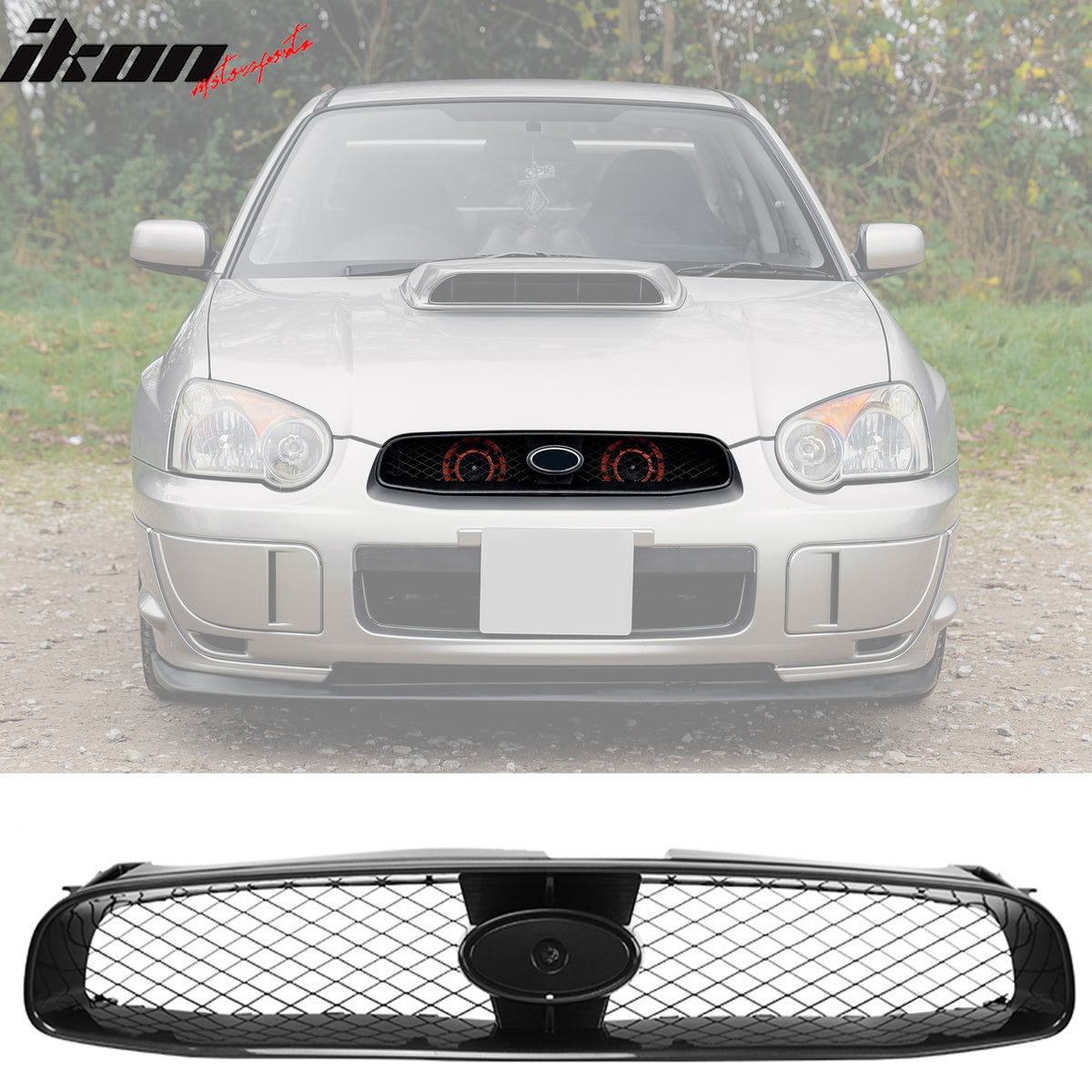 2004-2005 Subaru Impreza STI Style Front Bumper Grille Gloss Black ABS