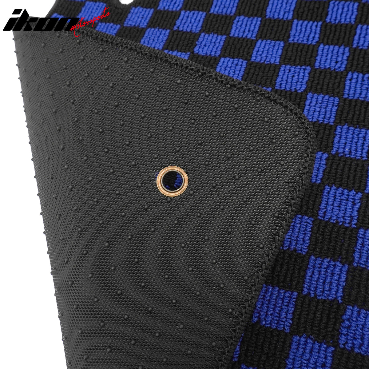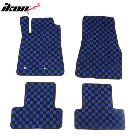 2005-2009 Ford Mustang Black Blue Plaid Front Rear Full Set Waterproof Floor Mats Checkered Carpets PP & Loop Pile Surface & TPE Backing 4PCS