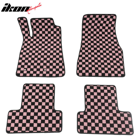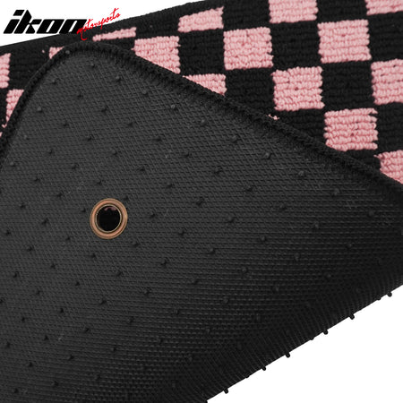 2005-2009 Ford Mustang Black Pink Plaid Front Rear Full Set Waterproof Floor Mats Checkered Carpets PP & Loop Pile Surface & TPE Backing 4PCS