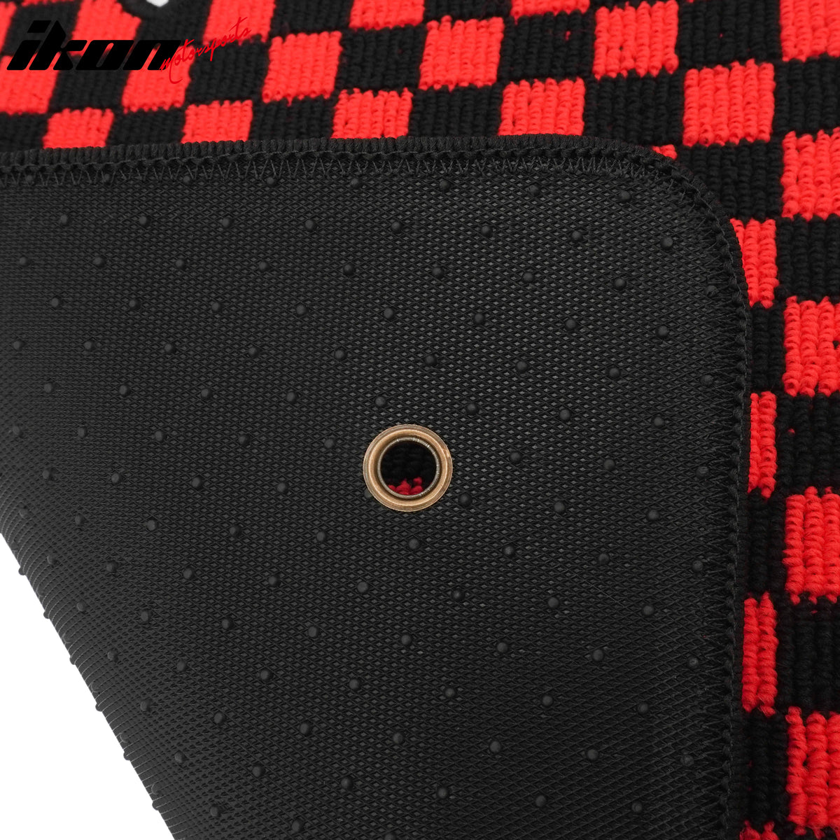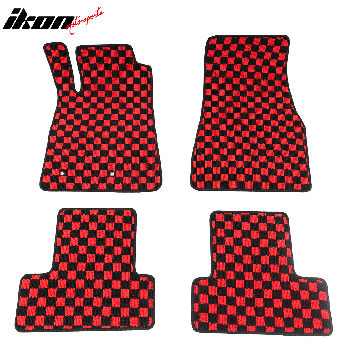2005-2009 Ford Mustang Black Red Plaid Front Rear Full Set Waterproof Floor Mats Checkered Carpets PP & Loop Pile Surface & TPE Backing 4PCS