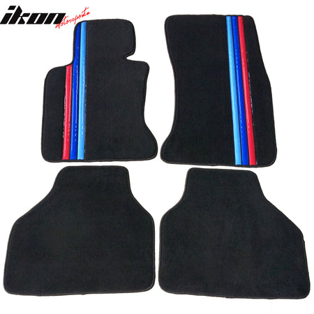 Car Floor Mat for 2005-2010 BMW E60 5 Series Black M Stripe 4PC Nylon