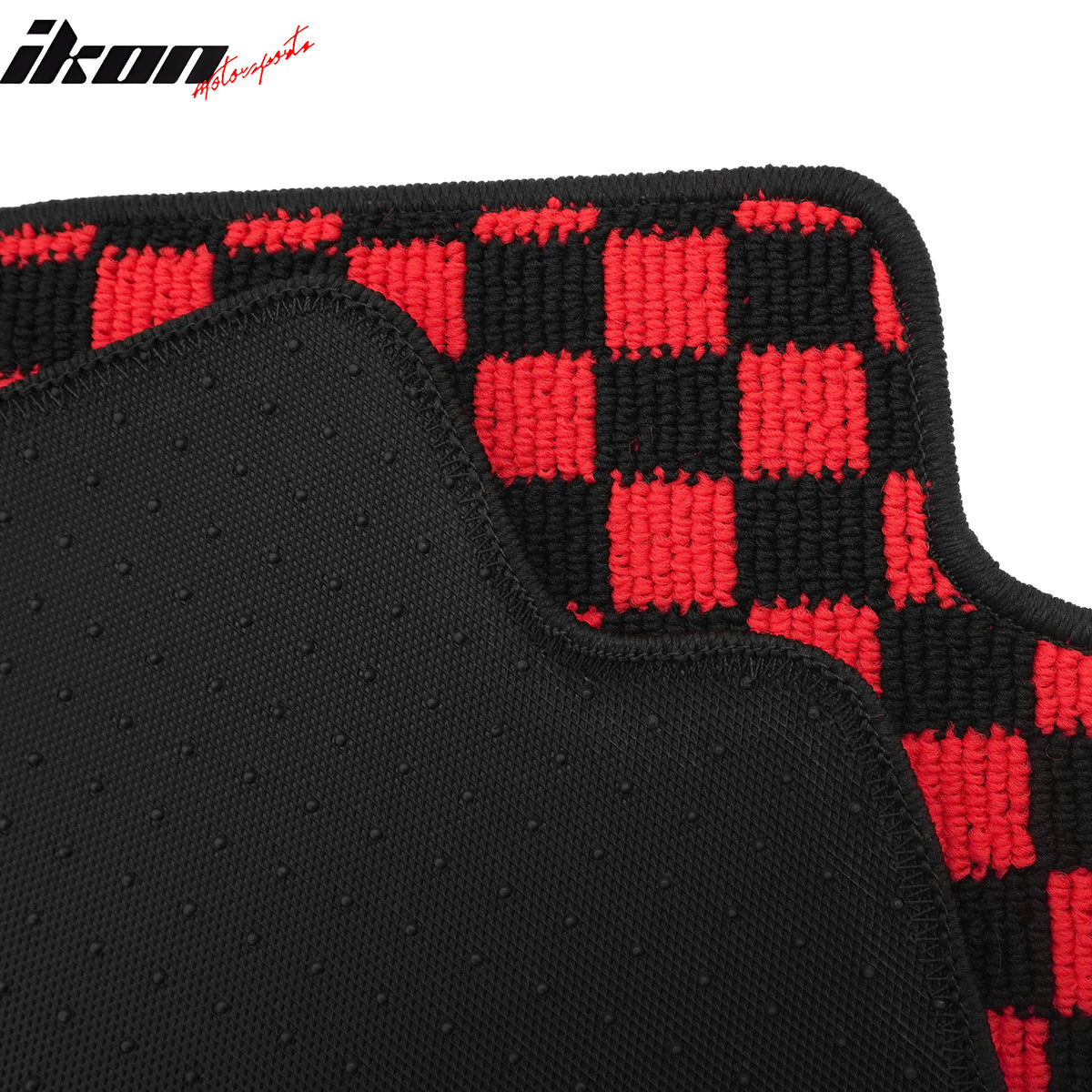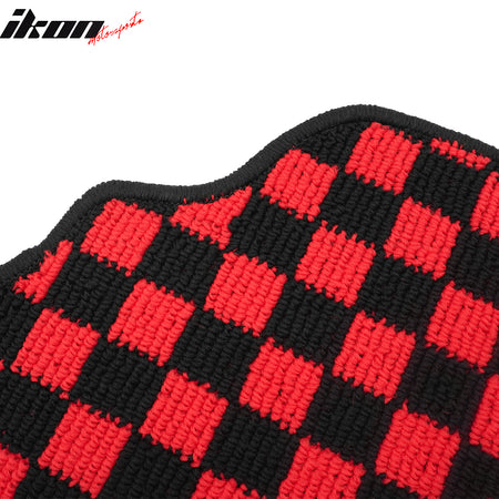 2007-2013 BMW E92 3-Series Coupe Black Red Plaid Front Rear Full Set Waterproof Floor Mats Checkered Carpets PP & Loop Pile Surface & TPE Backing 4PCS