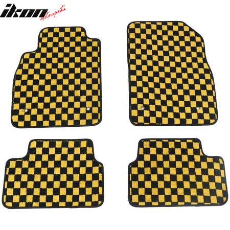 2008-2015 Chevrolet Cruze & 2016 Cruze Limited Black Yellow Plaid Waterproof Floor Mats Checkered Carpets PP & Loop Pile Surface & TPE Backing 4PCS