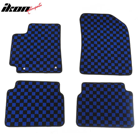 2009-2013 Toyota Corolla Black Blue Plaid Front Rear Full Set Waterproof Floor Mats Checkered Carpets PP & Loop Pile Surface & TPE Backing 4PCS