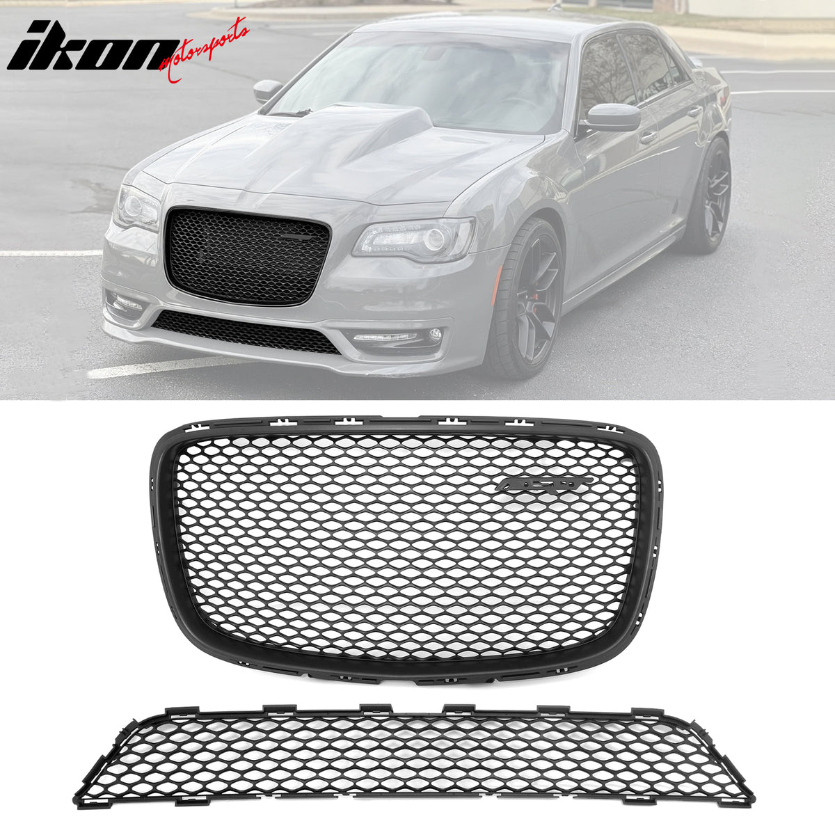 2015-2023 Chrysler 300 Matte Black SRT Style Upper + Lower Grilles ABS