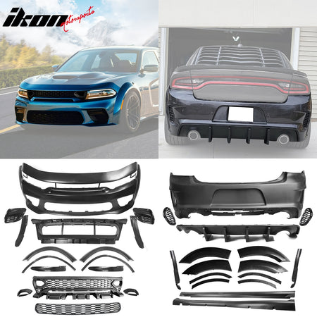 2015-2023 Dodge Charger IKON Matte Black Front Rear Bumper Covers PP