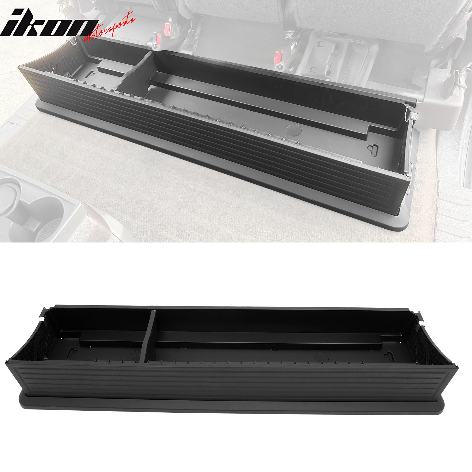 Note: For models without a factory storage box, you may need to cut or modify the floor mat.