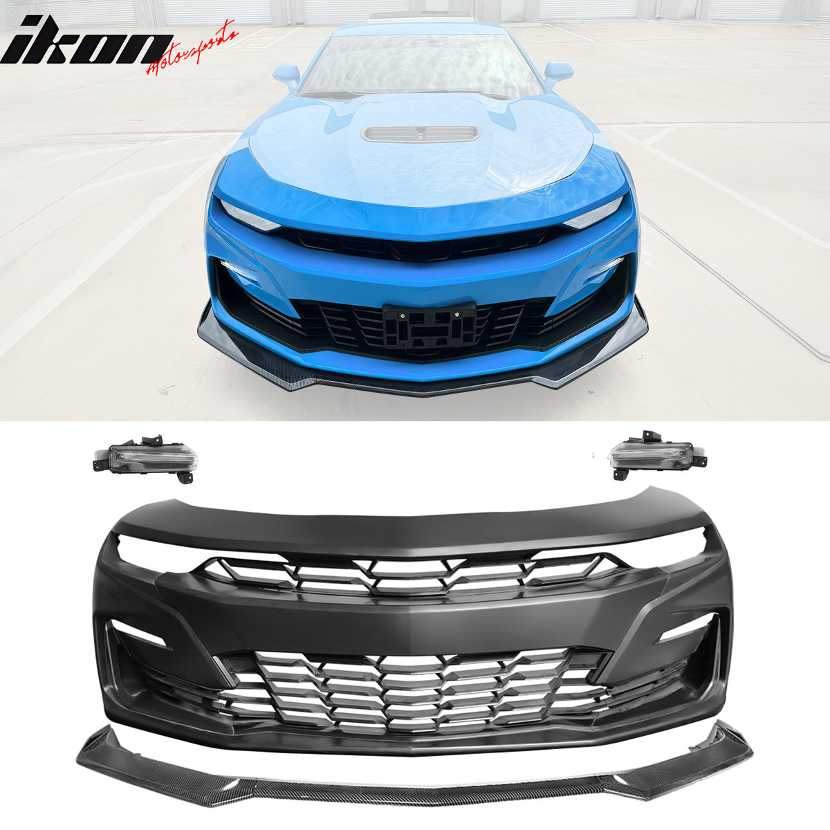 2019-2024 Chevy Camaro SS Front Bumper LED DRL Carbon Fiber Print Lip