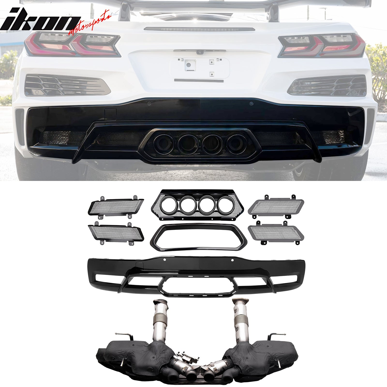2020-2025 Chevy Corvette C8 Rear Diffuser Lip + Exhaust Muffler Pipe