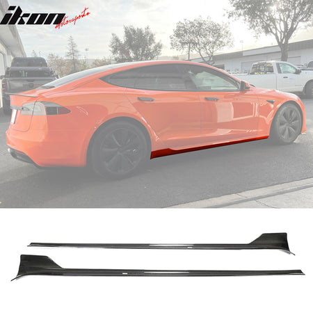 2021-2025 Tesla Model S Gloss Black Revozport Side Skirts Carbon Fiber