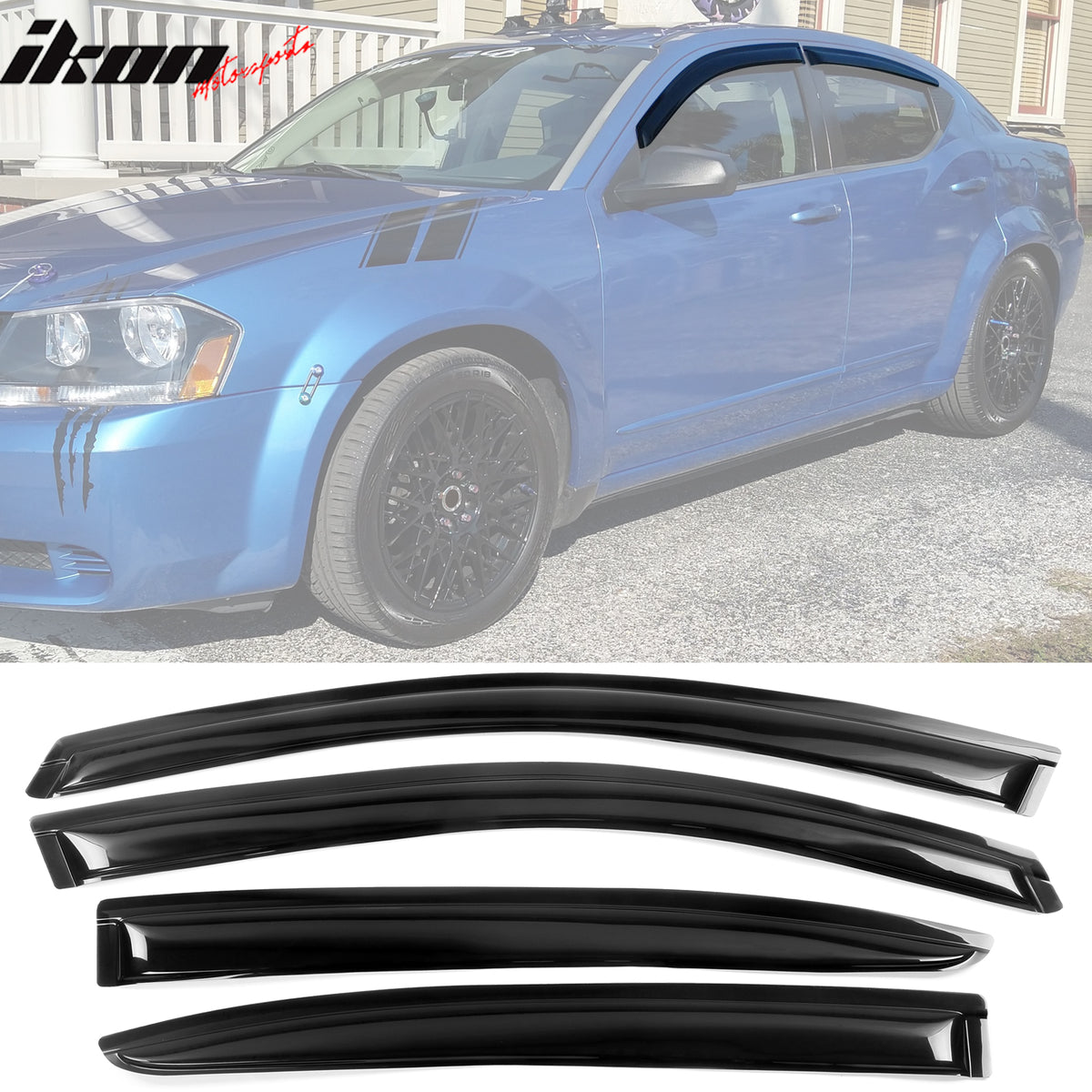 2008-2014 Dodge Avenger Slim Style Smoke Tinted Visor Window Acrylic