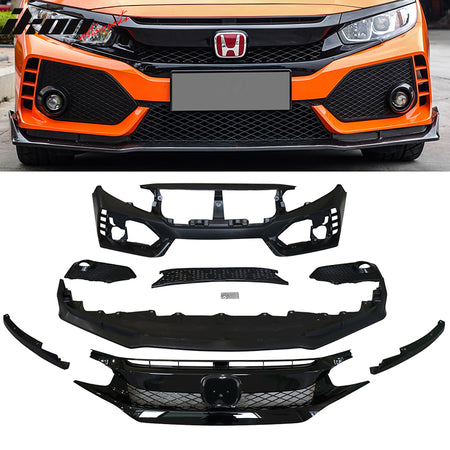 2016-2021 Honda Civic Type-R Front Bumper + Grille + Lip Gloss Black