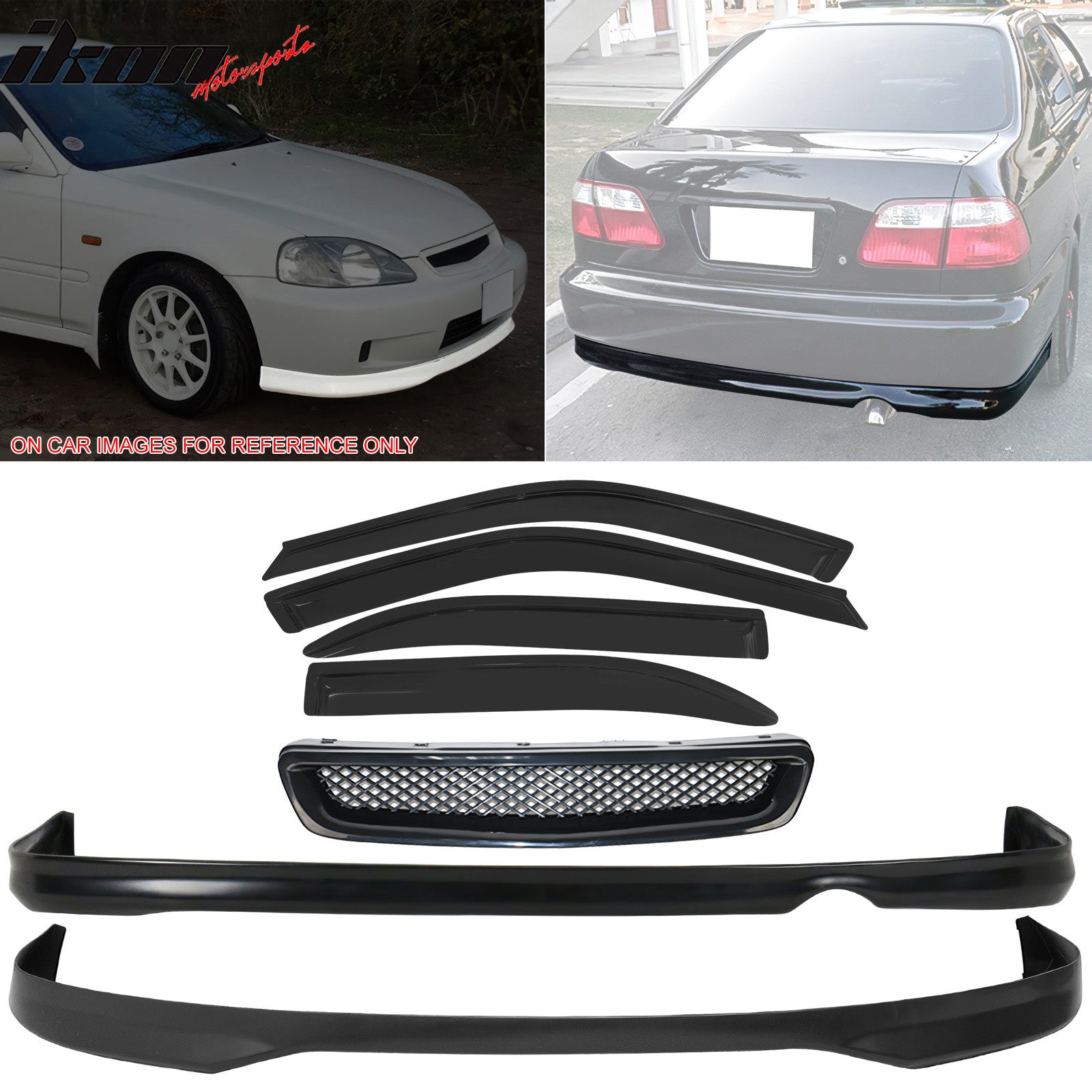 Fits Civic 96-98 Front + Rear Bumper Lip + Front + Sun Window Visor