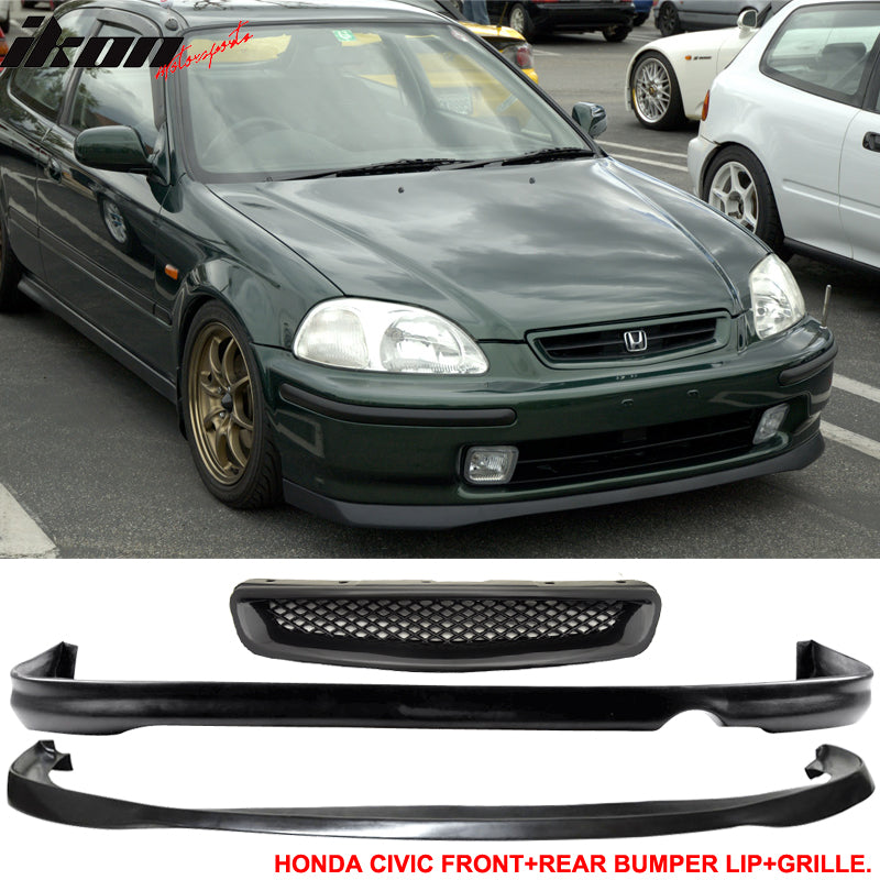 Fits Honda Civic 96-98 2 SIR Front Rear Bumper Lip + T-R Front Grille
