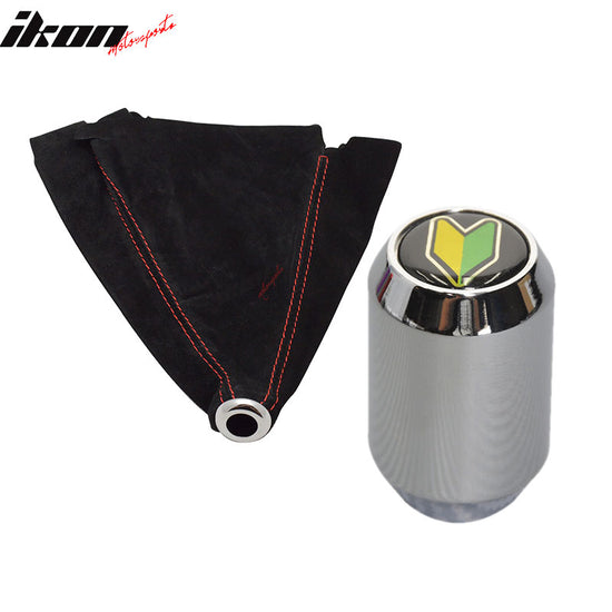 JDM style Red Stitch Shift Black Suede Boot Cover Chrome MT Shift Knob