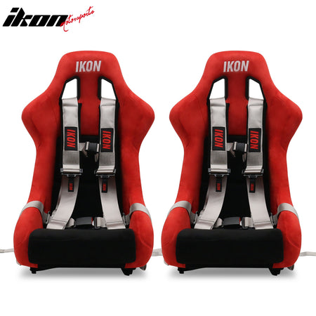 Universal Racing Bucket Seats W/4 Point 3" Belt Harness Grey