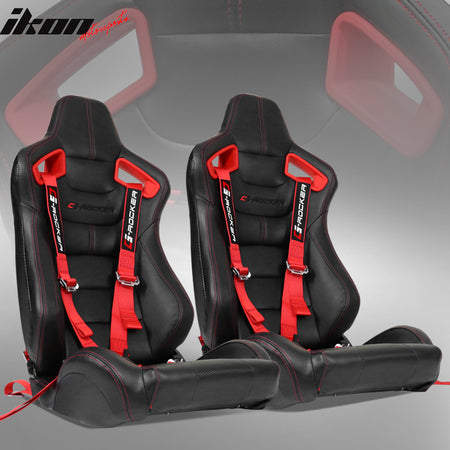 Universal Red Bezel Racing Seat Dual Slider Cam-lock Belt PU Carbon